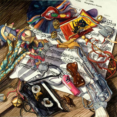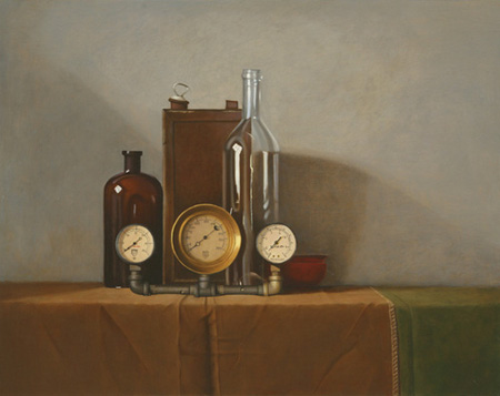 Tuesday, September 22nd, 2009Jennifer Lewis Takahashi’s still life paintings are heavily layered and textured, not only in subject matter, but in meaning, and I find the  more time I spend with them the more I get absorbed in their suggested narratives.